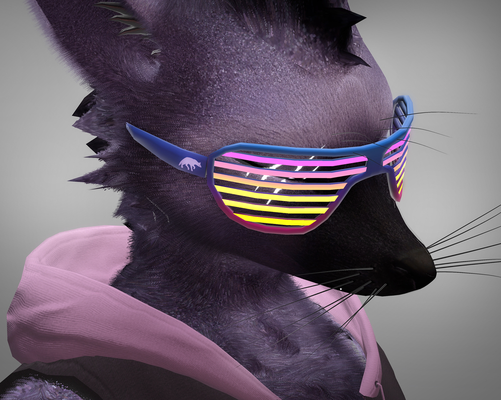 Add some retro flare to your clubbing attire with these shutter shades! Crafted to fit the Rexouium right out of the box, but also includes blend shapes to help fit to other fuzzy faces ^.^